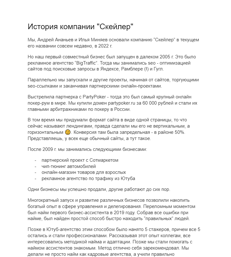 Помогли с подбором личного ассистента, после чего решил нанять второго скейлера на проектные задачи